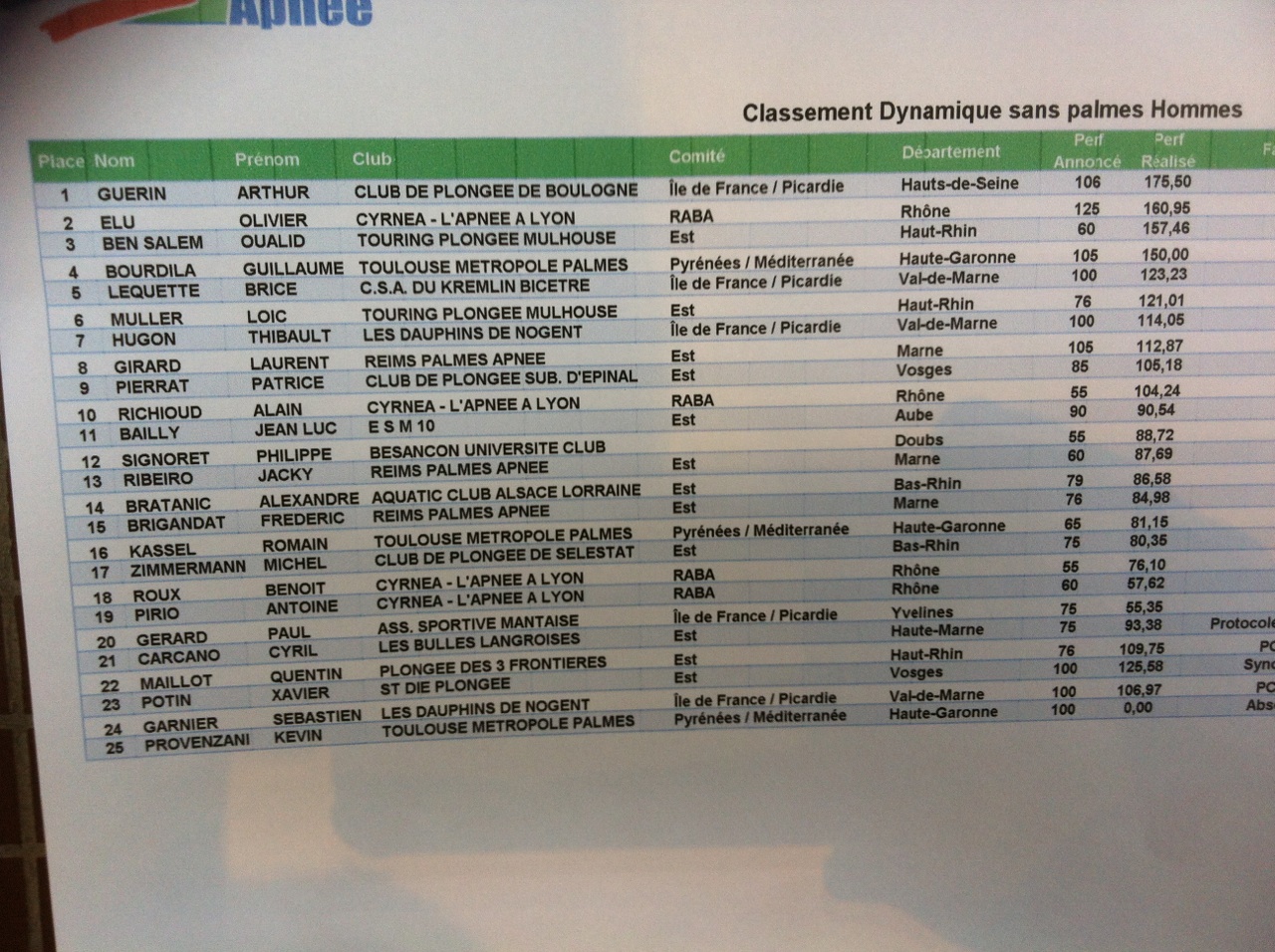 1ere manche de coupe de France d’apnée FFESSM, Montreuil LE LIVE